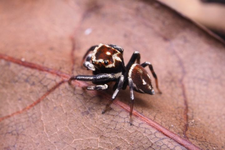 この度、弊社スタッフの仲間信道が展示写真協力を行った徳島県立博物館の「自然史コレクション クモという生き物」が4/9より始まりました。ハヤブサカノコハエトリという鹿児島県の奄美大島・徳之島にのみ生息するハエトリグモの徳之島個体群の写真を提供しております。本種は奄美大島のみから知られていましたが、2022年に徳之島の個体群が仲間らによって発見され、2023年に分布が報告されました(仲間・鈴木, 2023. p42)。頭胸部背面にハヤブサのような模様が入る非常にかっこいいハエトリグモです(本ページトップの画像は奄美大島産♂成体)。